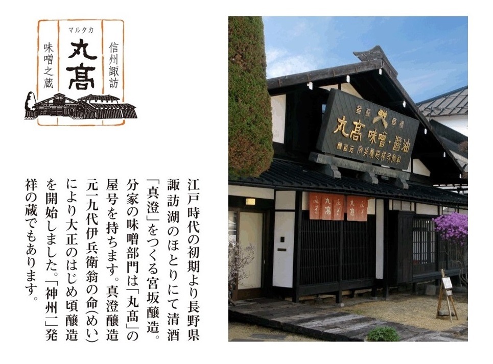 上諏訪にある、神州一味噌発祥の蔵「丸高蔵」。吟味した大豆と米と塩、そして蔵伝承の麹を使用し、素朴であたたかい味噌を製造されています。その伝統ある良質な味噌を贅沢に使い、新鮮なあんこうの肝と味噌のハーモニーと素材の旨味を引き出した「プレミアムなあん肝のみそ漬」として、「匠味」(たくみ)と命名致しました。