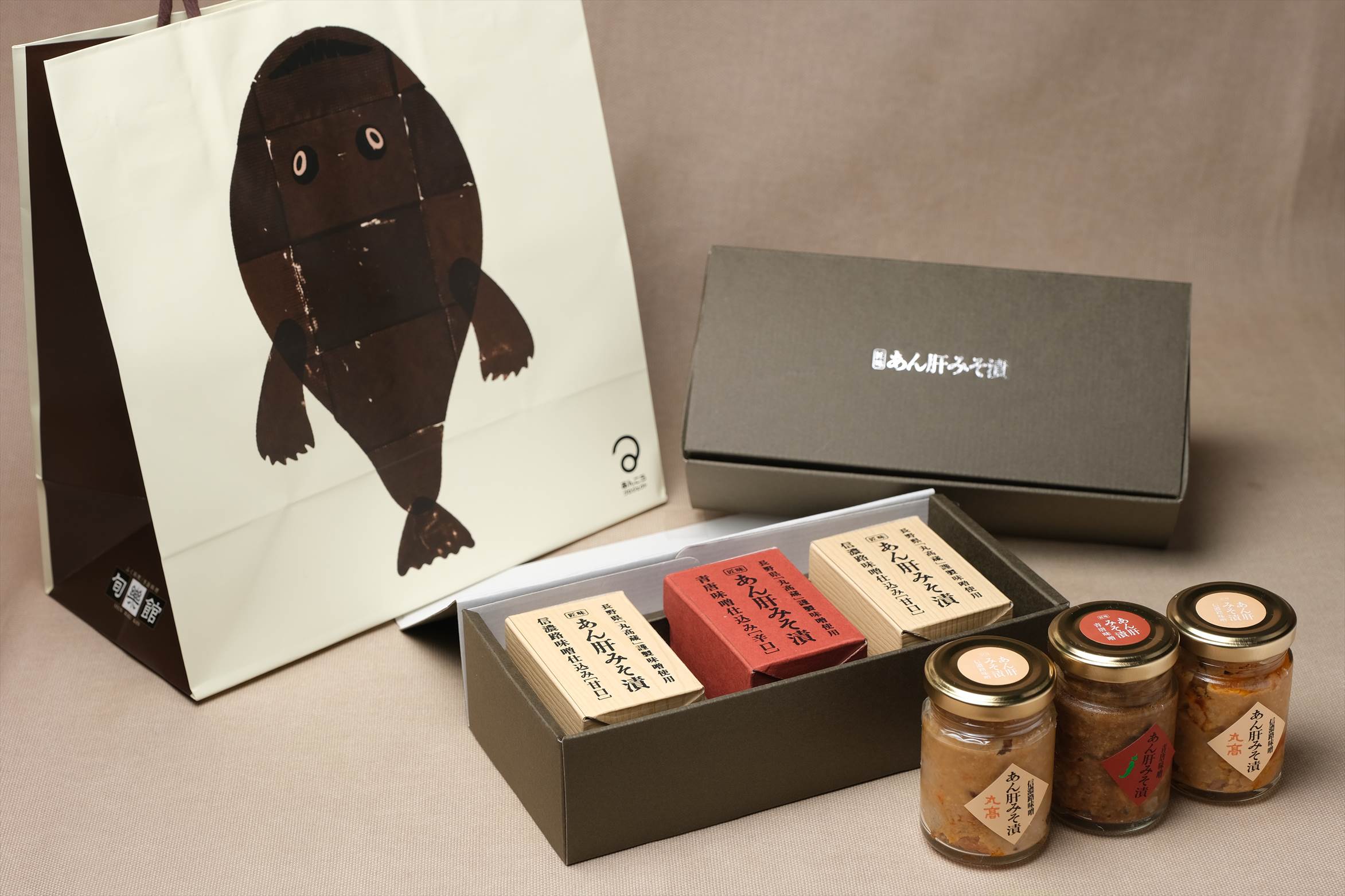 愛嬌たっぷり、キモかわいいあんこうのイラストが目を引くオリジナルペーパーバッグ付きです。