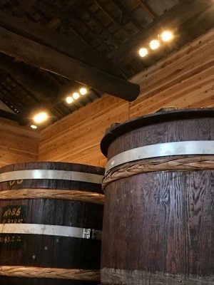 木桶醤油はこの年季の入った杉桶で、ゆっくりじっくり熟成しました。